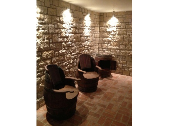 Unter Weinkellerbau verstehen wir auch die Ausstattung Ihrer Räume. Sei es ein Hygro-Thermometer, Schieferbeschriftungstafeln, Wandlampen aus Weinfassdauben, Eichenfässer, ein individuell gestalteter Fasssessel / Fasstisch oder nur ein Korkenzieher. Bei uns stehen auch die Details im Mittelpunkt.