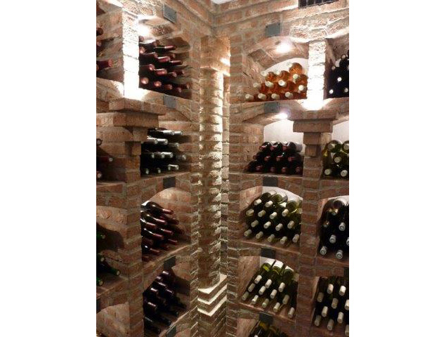 Entlang den Wänden und in den gemauerten Nischen werden die Weinregale platziert. Je nach Lagerbedarf wird Raum für einzelne Flaschen, Weinkisten oder Magnumflaschen geschaffen.
